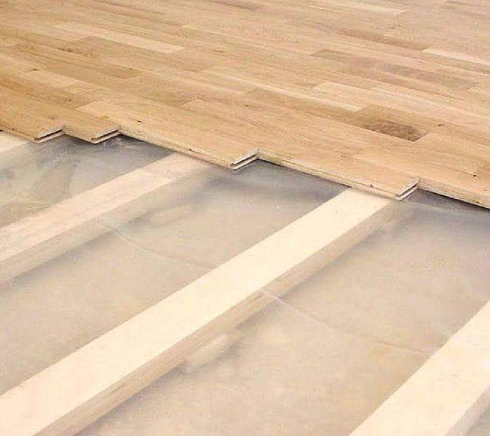 - Se instalan rastreles de pino atornillados y nivelados sobre el suelo ( separación de 30 a 40 cm)